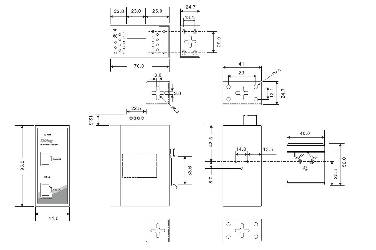 The INJ-101GT-BT-24V is a IEEE802.3af/at/bt PoE injector. It is intelligent detection that provided 1-port 10/100/1000Base-T (X) PoE outputs. The device does not turn on until it detects a valid PoE signature from the PoE devices attached downstream on the Ethernet cable. This protection against damage to non-PoE compliant equipment which may connected to the Ethernet cable. Therefore, only an IEEE 802.3af/at/bt compliant device can be powered with the INJ-101GT-BT-24V Injector, typically in Gigabit networks the maximum allowable CAT5 cable length is about 100 meters due to the limitation of the Ethernet standards. The INJ-101GT-BT-24V PoE Injector can function with any PoE equipment which is fully compliant with the IEEE 802.3af/at/bt PoE standards.