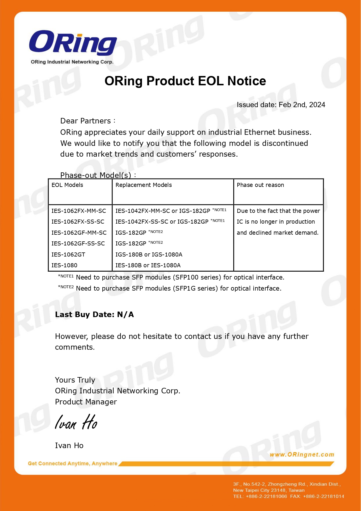 Phase-out Model:IES-1062FX-MM-SC、IES-1062FX-SS-SC、IES-1062GF-MM-SC、IES-1062GF-SS-SC、IES-1062GT、IES-1080